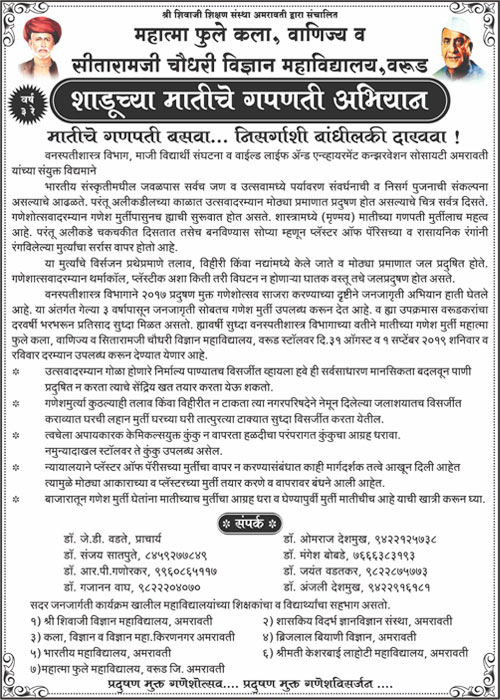 Mahatma Fule Arts,Commerce & Sitaramji Chaudhari Science Mahavidyalaya, Warud , Dist - Amravati 444906 (M.S.)